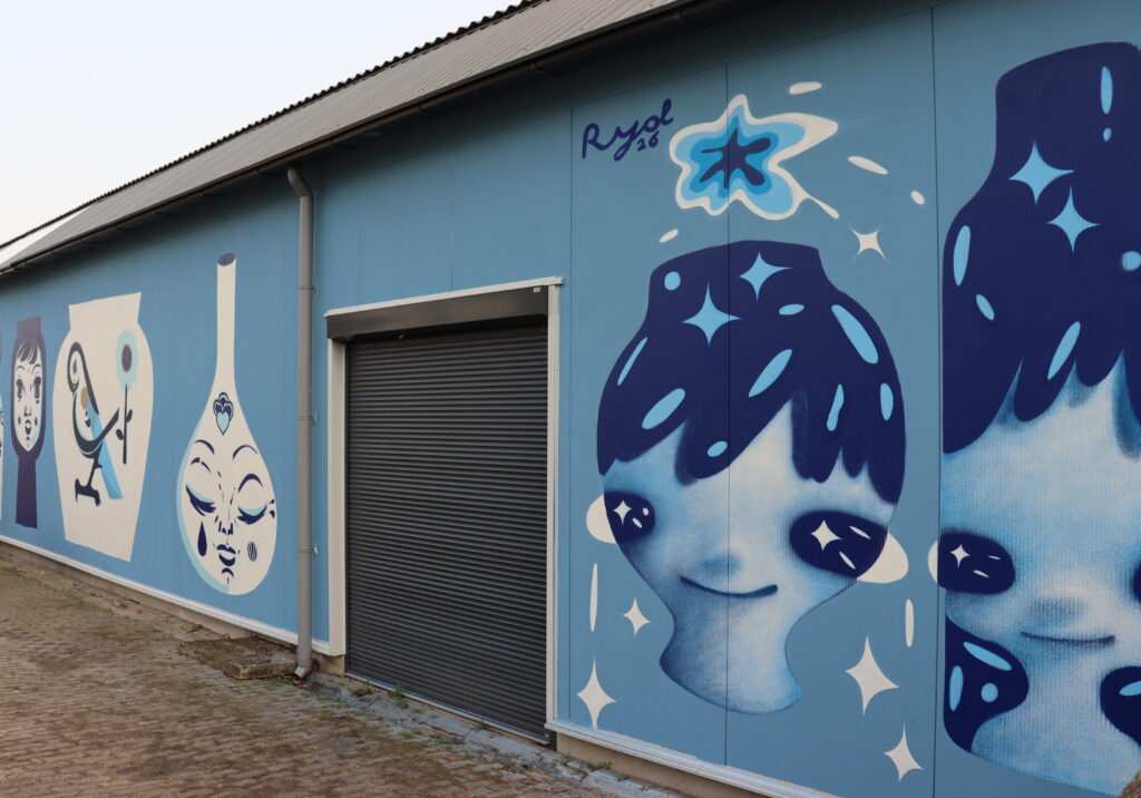 Naast zes unieke tegeltableaus en objecten uit de Royal Delft-collectie hebben de artists ook een mural op de buitenmuur van de fabriek geschilderd.